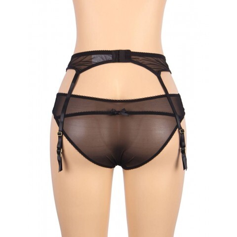 Трусики и пояс для чулок с ремешками черные Sexy Exquisite Lace (M-L)