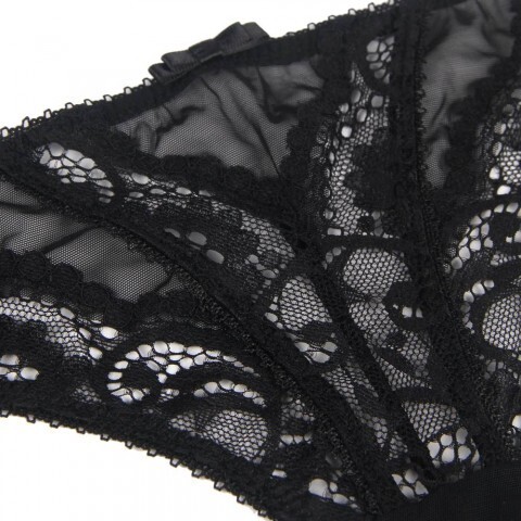 Высокая посадка пояса акцентирует внимание на талии и бедрах, выгодно подчеркивая их изящность. Полупрозрачная ткань подразнивает взор смотрящего, интригуя и возбуждая интерес, а кружевные узоры добавляют богатого лоска.