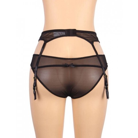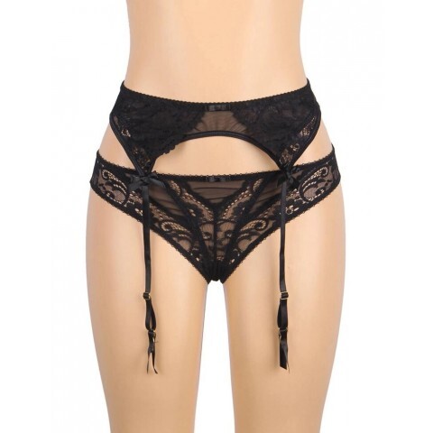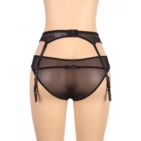 Трусики и пояс для чулок с ремешками Sexy черные Exquisite Lace (3XL-4XL)