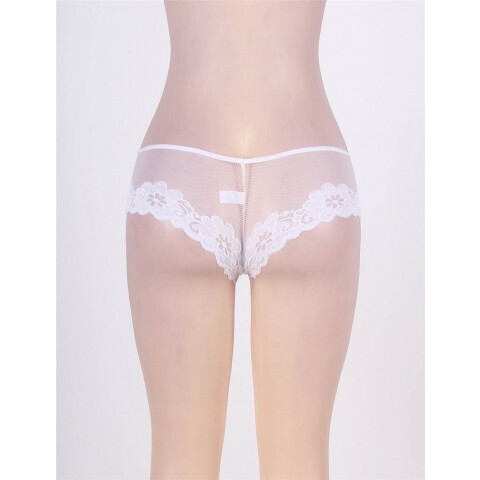 В этом вам с легкостью помогут красивые белые прозрачные трусики White Floral, выполненные из просвечивающегося легкого материала, с цветочным узором на окантовке.
