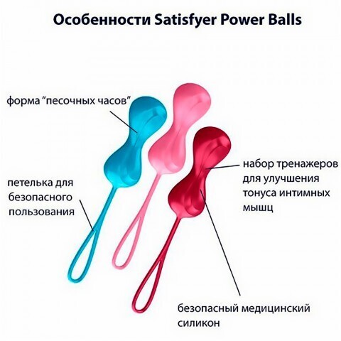 КоКомплектация Satisfyer Power Balls:мплекс тренировки тазового дна для более интенсивных оргазмов.