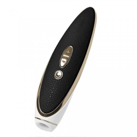 Начнем с внешнего вида! Стимулятор покрыт натуральной кожей с тиснением. Это дает не только эстетический внешний вид, но и не позволяет устройству скользить в руке. Золотистого цвета кнопки и рамка выполнены из сплава меди и алюминия, что в сочетании с кожей смотрится очень богато!