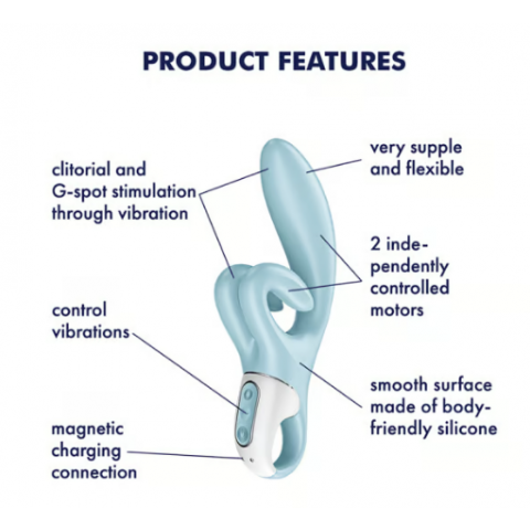 Satisfyer Touch Me — эргономичный вибратор-кролик для комплексной стимуляции. Модель выполнена из мягкого на ощупь гипоаллергенного силикона и продумана для комфортной посадки: гибкий корпус помогает точнее расположить изделие относительно анатомии, а плавные переходы снижают ощущение избыточного давления на чувствительные зоны. Два независимых мотора работают согласованно: один передаёт вибрацию на основной ствол, второй — на дополнительный отросток для внешней стимуляции. Такая конфигурация позволяет акцентировать воздействие в области точки G и снаружи одновременно, выбирая подходящую интенсивность под задачу момента.
