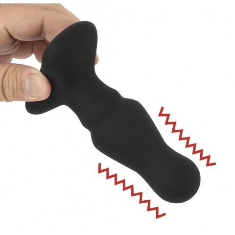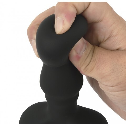 Перезаряжаемый девайс, выполненный из премиального силикона в черном цвете имеет надувной наконечник с регулируемым давлением для эффективного воздействия на точку Р. Оснащен мощным моторчиком, предлагающим 6 режимов вибрации. За счет надувной головки вы можете начать с малого и увеличивать размер для более глубинного наслаждения. Водонепроницаемость позволяет испытать на себе его способности в ванне или душе. Управление осуществляется как с помощью кнопки на устройстве, так и посредством пульта ДУ на расстоянии до 8 метров. Стандартное время зарядки составляет 3 часа, что дает 10 часов использования.