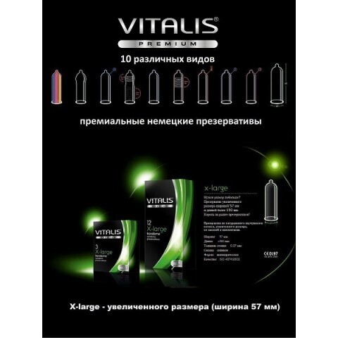 Презервативы увеличенного размера VITALIS №3 Large созданы специально для мужчин "побольше". С ними вы можете позабыть о дискомфорте и сдавливаниях, сконцентрировавшись на страстных занятиях любовью.